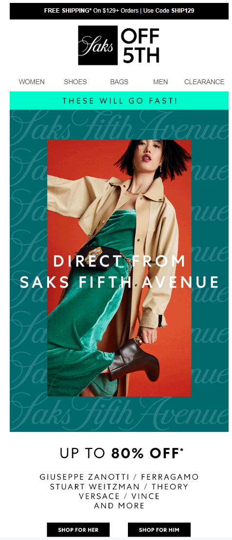 삭스피프스에비뉴에서 온 제품들을 최대 80%까지 할인합니다.